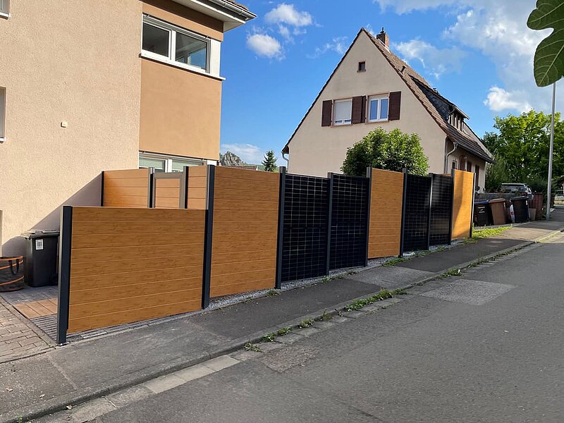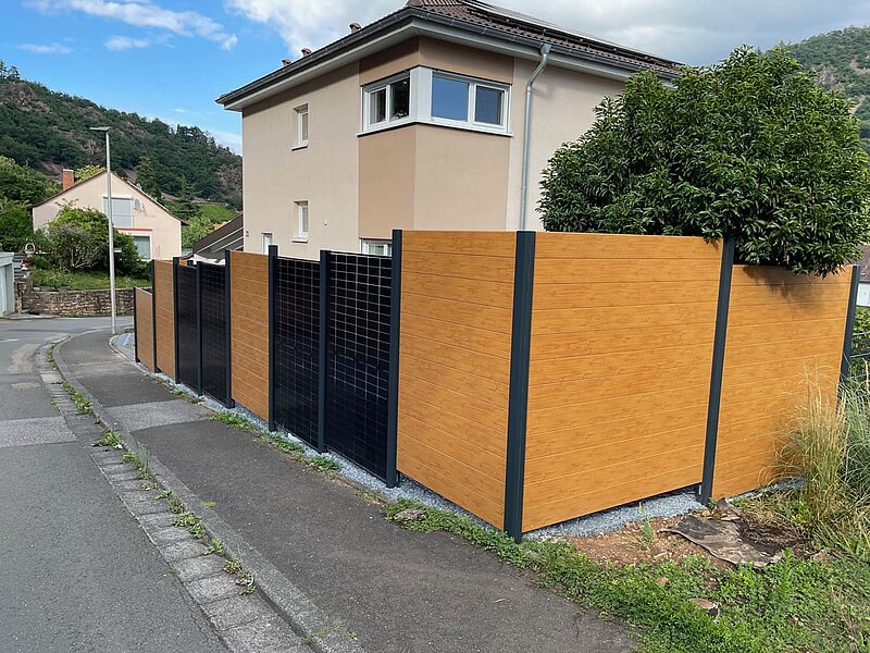 Sichtschutzzaun Rhombus Alu Anthrazit am Hang