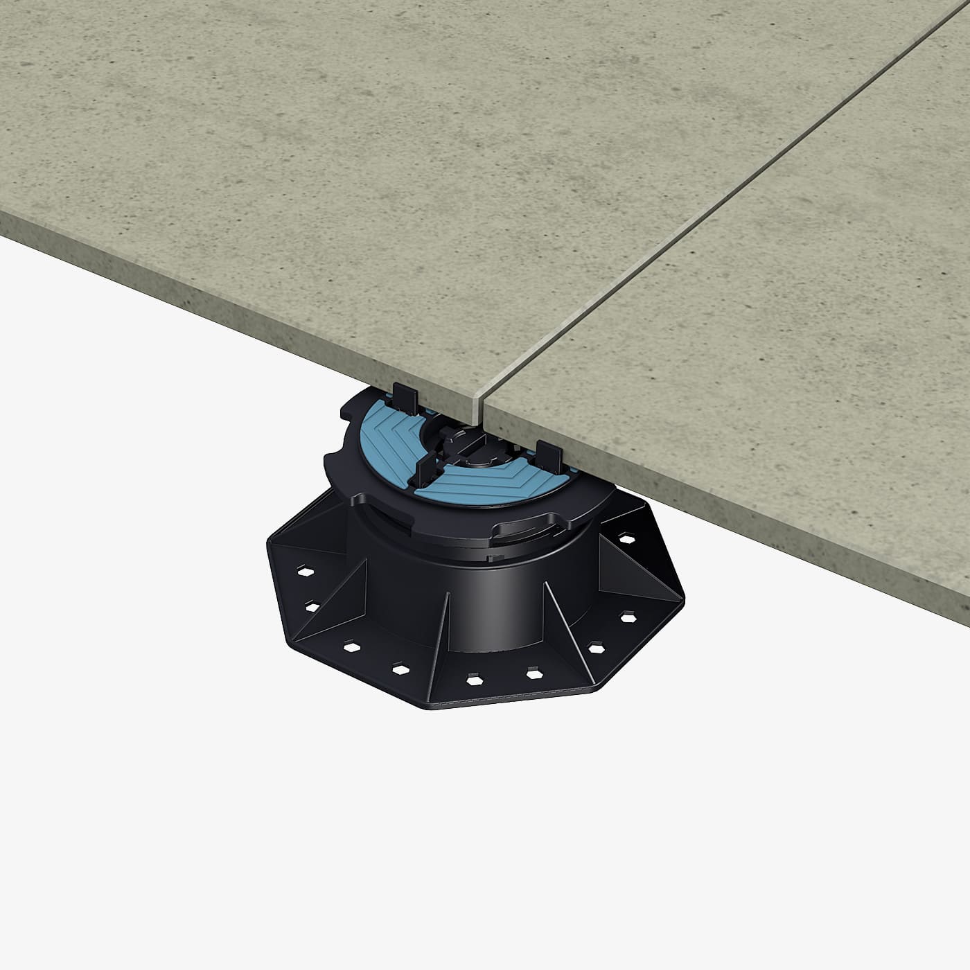 Der CROSS-Adapter mit integrierter Gummiauflage ermöglicht die direkte Verlegung von Terrassenplatten auf TRIAS HELIX Stelzlagern. Die integrierte Gummiauflage sorgt für eine sichere, rutschfeste und vibrationsgedämpfte Auflage der Platten und trägt zu einem ruhigen, stabilen Gesamtaufbau bei. Ideal für eine effiziente und zeitsparende Terrassenverlegung. Erhältlich in den Fugenbreite 2, 3 und 4 mm.