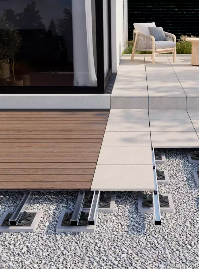 Der Unterkonstruktion kommt eine zentrale Bedeutung im Terrassenbau zu. Sie bildet die Basis für dauerhafte Stabilität und prägt maßgeblich die ästhetische Qualität einer Terrasse. Aus dieser Überzeugung heraus legt Blauform bei der Konzeption der TRIAS Systeme besonderen Wert auf hochwertige Materialien, Witterungsbeständigkeit, Belastbarkeit, Stabilität und Passgenauigkeit. Umfangreichstes System des Portfolios ist die Terrassenunterkonstruktion TRIAS ALU aus hochwertigem Aluminium. Sie wird seit 2015 kontinuierlich weiterentwickelt. Heute steht sie in drei Varianten mit hoher Systemtiefe zur Verfügung und ermöglicht eine stabile, flexibel einsetzbare und tragfähige Unterkonstruktion für unterschiedlichste Anforderungen im Terrassenbau.