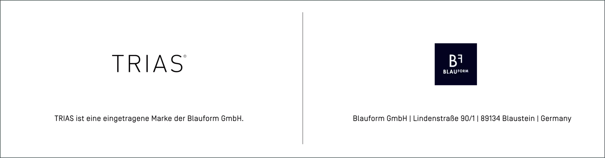 TRIAS ist eine Marke der Blauform GmbH. Sitz des inhabergeführten Unternehmens ist im süddeutschen Blaustein bei Ulm. Seit der Gründung im Jahr 2015 entwickelt Blauform unter der Marke TRIAS hochwertige Terrassen-Unterkonstruktionen und Sichtschutz-Systeme für den privaten als auch professionellen Einsatz im Garten- und Landschaftsbau sowie im Wohnbau und Objekt.